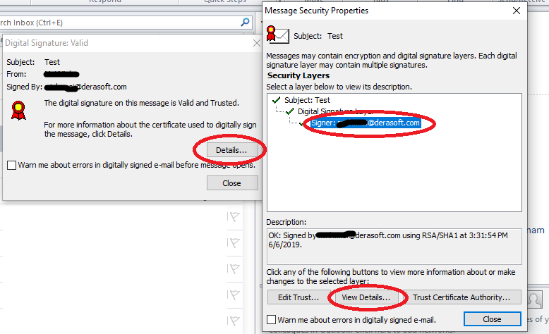 Khi một email được ký số, người nhận có thể dùng các dấu hiệu để nhận biết và kiểm tra thông tin chữ ký số.