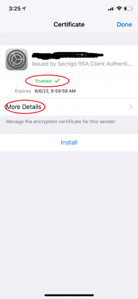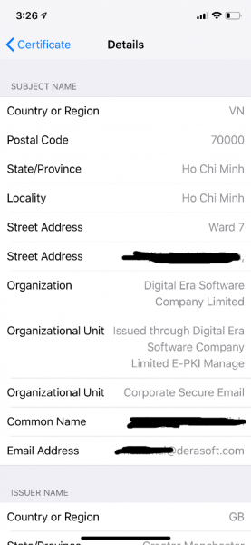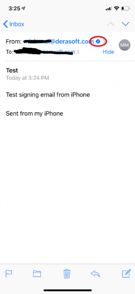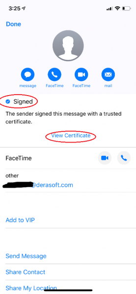 Trên iPhone/iPad, khi mở email được ký số, bạn sẽ thấy bên cạnh địa chỉ email người gửi có một icon hình chứng thư. Tap vào đó sẽ hiện ra dấu hiệu email đã được ký số. Tap vào "View Certificate" để xem thông tin chữ ký số.