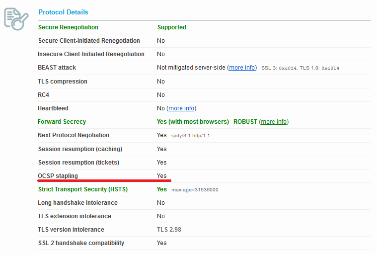 Trong kết quả test, bạn kiểm tra mục "OCSP stapling"