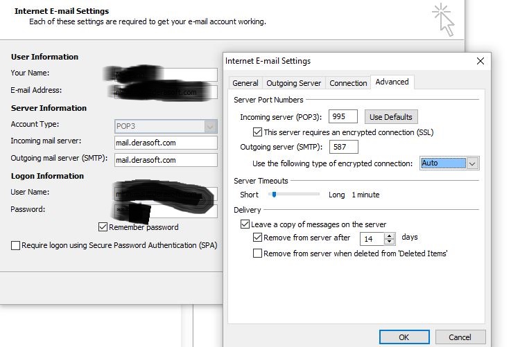 Để cấu hình cho Outlook, bạn tham khảo hình sau: