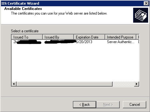 Trong màn hình tiếp theo, chọn chứng thư số mà bạn muốn sử dụng cho website này. Sau đó nhấn Next.