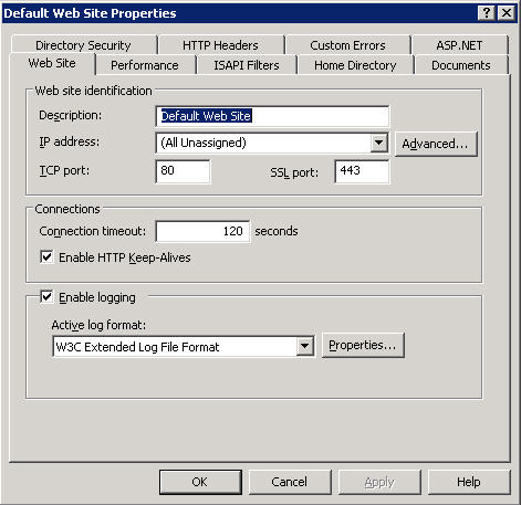 Bạn có thể thay đổi port cho SSL tại tab Web Site.