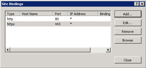 Lúc này trong danh sách Site Bindings sẽ xuất hiện thêm một record https. Nhấn Close.
