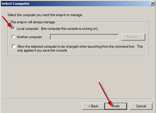 6. Trong màn hình tiếp theo, chọn Local computer và nhấn Finish.